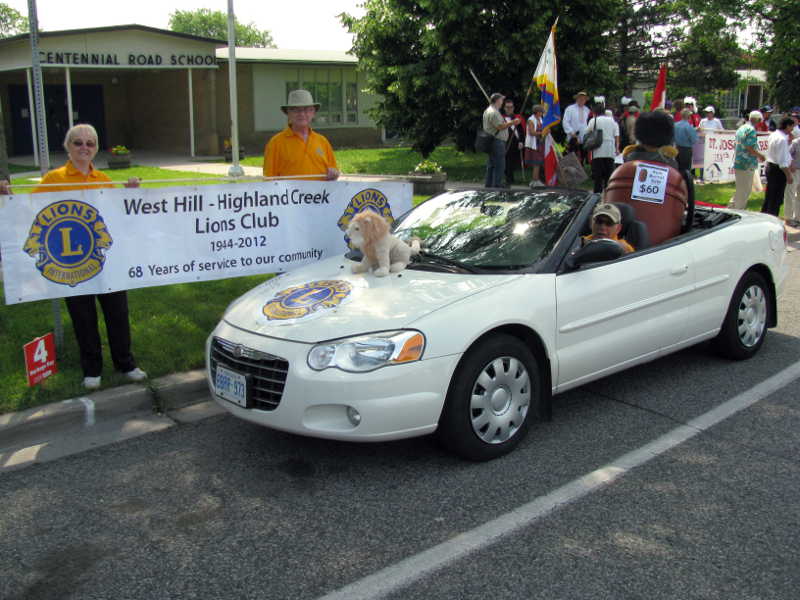 The West Hill - Highland Creek Lions Club once more participated in the Highland Creek Heritage Day parade. Following the parade, they set up and ran the children's area (featuring mini-circuit rides, popcorn & candy floss) and sold the last of their rain barrels for the year.
